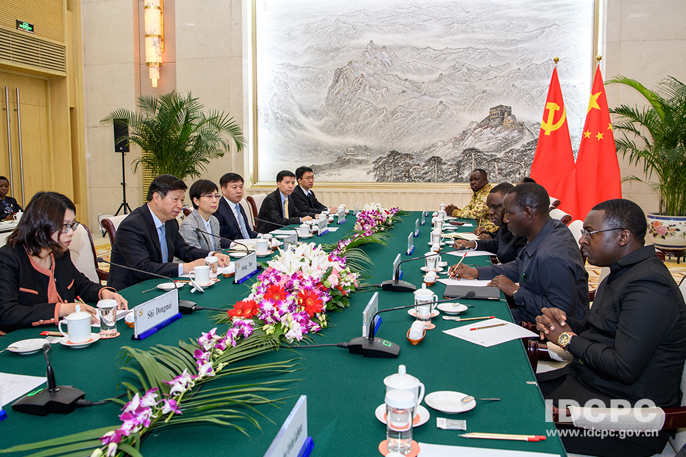 中国驻坦桑尼亚大使王克、中联部副部长郭业洲参加会见。