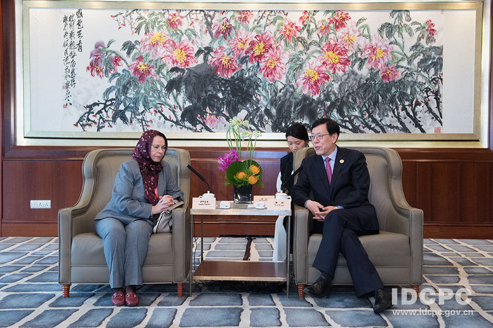 11月23日中午,中联部副部长李军在杭州会见了以阿尔及利亚民族民主联盟全国局委员、民族院副议长萨阿迪娅·贾法尔为团长,由来自阿尔及利亚、摩洛哥、突尼斯、埃及、毛里塔尼亚、吉布提主要政党领导人组成的马格里布国家政党干部考察团和北非国家政党干部考察团。